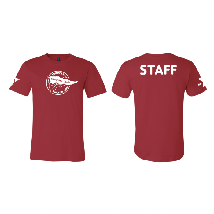 Tee with white Ihduhapi Flag design on front, "STAFF" on back, and Y logo on sleeve.