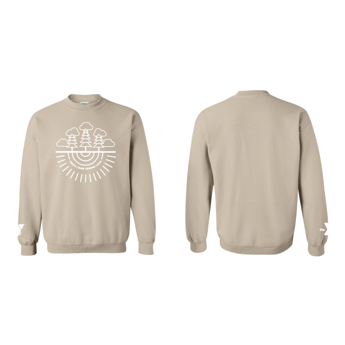 Crewneck with white Sun Reflection Spring Lake design on front and Y logo on sleeve.