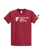 Tee with "Y Youth and Family Services" on front, Y logo and "Black Lives Matter" on back, and "Intern" on the sleeve. 8 oz., pre-shrunk 50/50 cotton/polyester